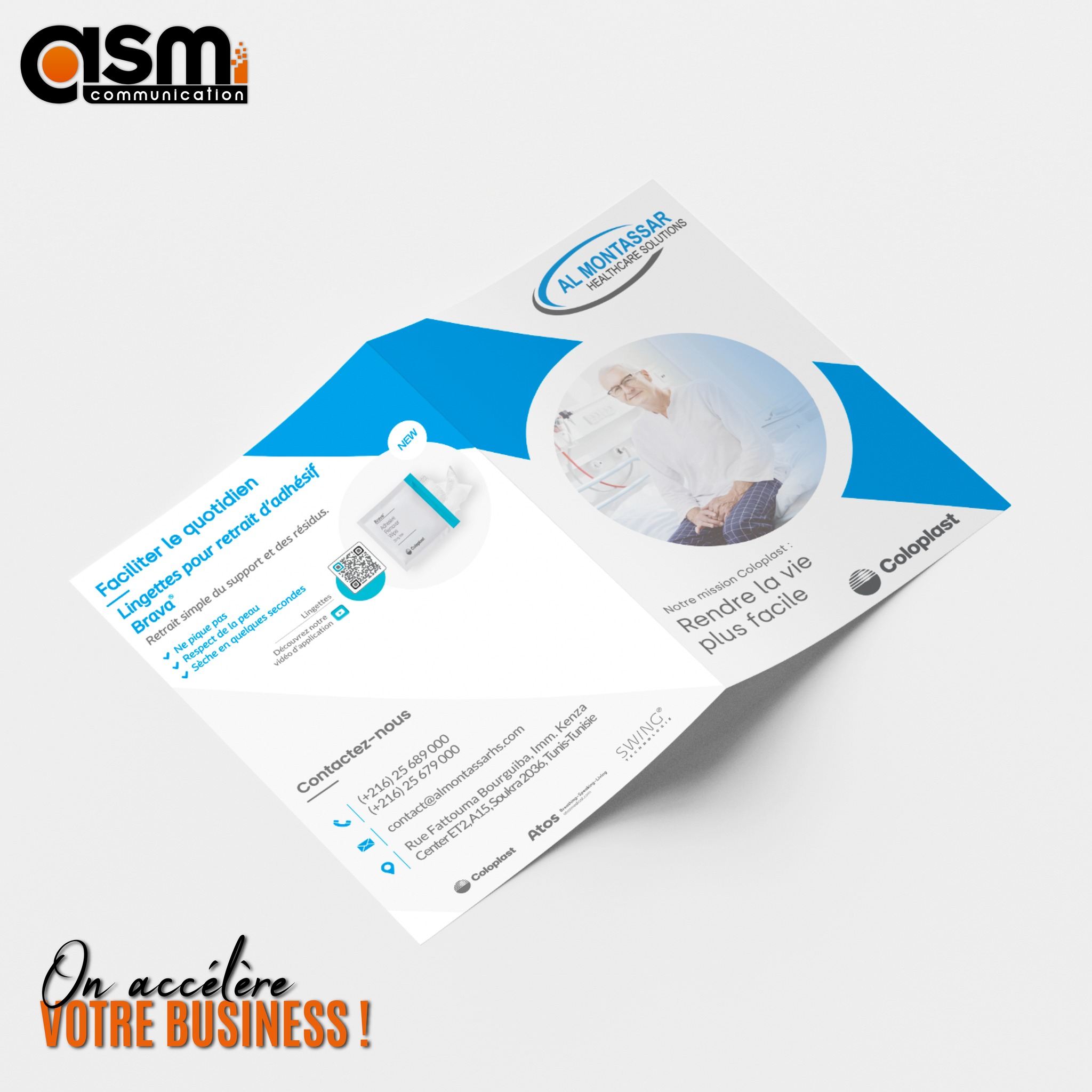 Notre équipe de designers graphiquesa a mis en œuvre toute leur créativité pour répondre aux besoins de notre partenaire Al Montassar Healthcare Solutions. Nous avons conçu une gamme complète de supports de communication qui reflètent parfaitement l’image et les valeurs de la marque. Parmi nos réalisations pour ce projet :